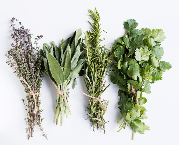 ペーパータオルを敷いた皿にハーブを均等に広げ、20~30秒間電子レンジで加熱する(途中で一度確認して)。パセリ、コリアンダー、タラゴンのような柔らかいハーブだけでなく、ローズマリーやタイムのような硬いハーブにもこの方法が使える。硬い茎のハーブをうまく乾燥するには、電子レンジに入れる前に茎から葉を摘み取っておくこと。