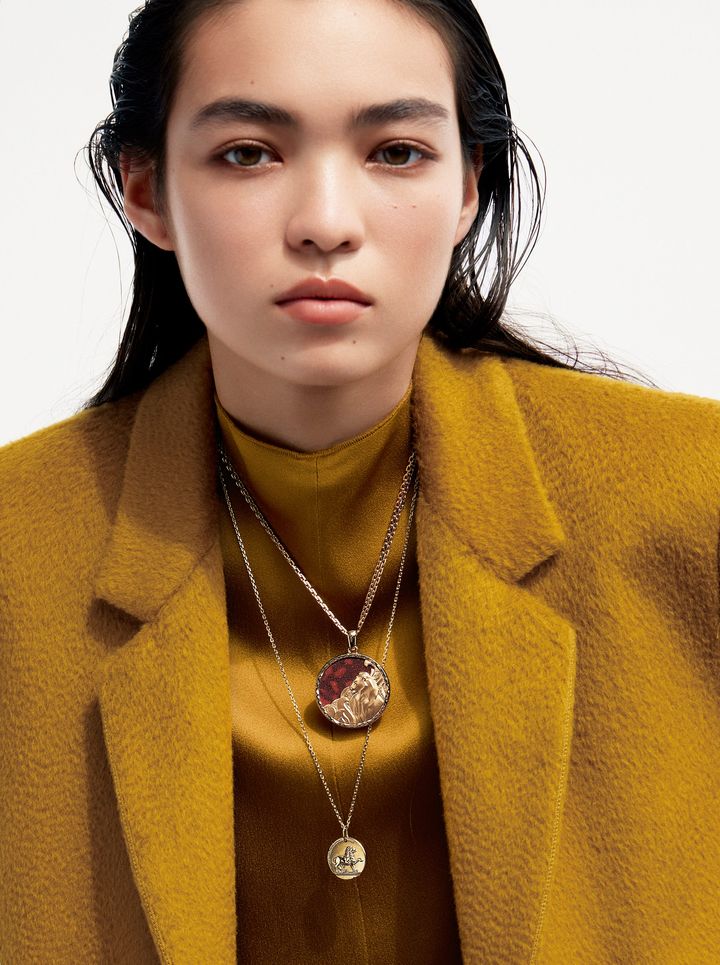 ネックレス〈上〉“ゾディアック ロングネックレス レオニス”[RG×レッドジャスパー]¥3,788,400 “フォルサ チェーン”[YG]¥239,800 〈下〉“ゾディアック メダル レオニス”[YG]¥418,000(すべてヴァン クリーフ&アーペル/ヴァン クリーフ&アーペル ル デスク)
