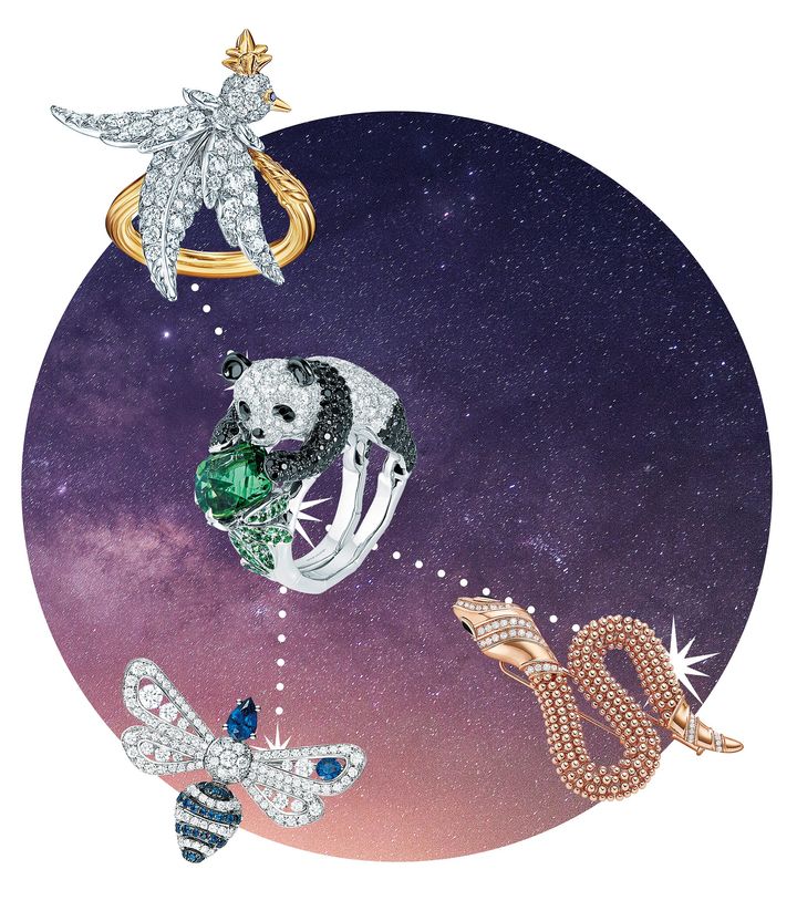 癒やしのパンダが、愛と平和を運んでくれます。リング“パンダ”[WG×トルマリン×サファイア×ダイヤモンド×ツァボライト]¥6,468,000[参考価格](ブシュロン/ブシュロン クライアントサービス)
