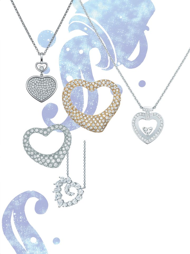 〈右から時計回りに〉“プリティウーマン”の名を冠したネックレスは、今期のテーマ「自分の心を大切に」ともリンク。ネックレス“プリティウーマン”[WG×ダイヤモンド]¥957,000(フレッド/フレッド カスタマーサービス)