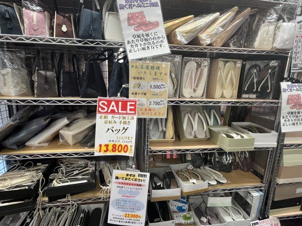 草履各種とそれにあわせたバッグ。草履は修理もできます。