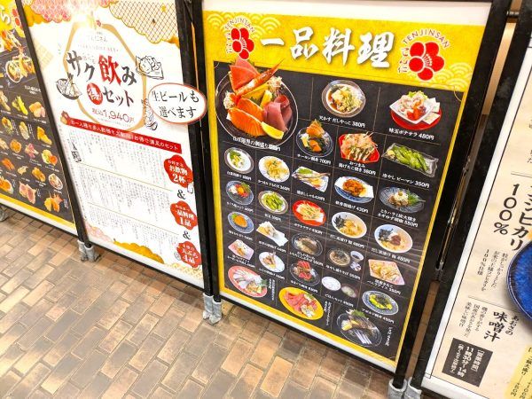 夜の一品料理は、ほぼ限界の刺し盛り・ふぐの唐揚げ・本マグロ刺身・〆さばと海鮮がおいしそうです。店主さんのご実家がお寿司屋さんだそうで、新鮮鮮魚へのこだわりも納得です。