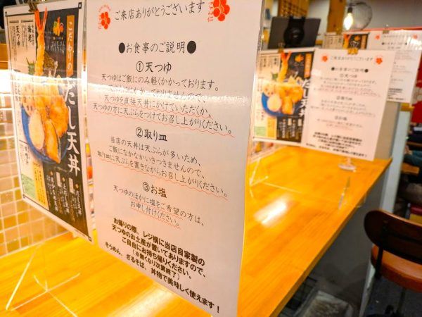 ランチメニューは天丼のみ!こだわりのだし天丼1000円