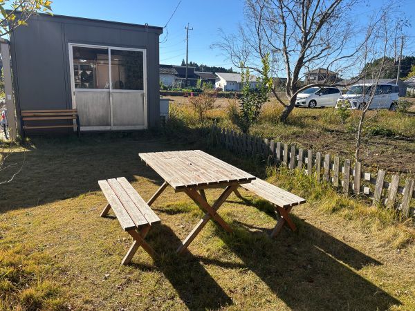 せっかくの焼き立てパン。温かいうちに食べたかったので、お店の横(外)のテーブルと椅子のあるスペースでいただくことにしました。