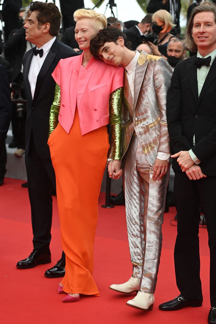 『マーティ~』のNYプレミアに母ニコールを連れて現れ、親子でオレンジ一色のメソッド・ドレッシングを披露した。ティモシーが着ているのは「トム フォード」のスーツ。眼鏡もこのところお気に入りアクセサリーのよう。