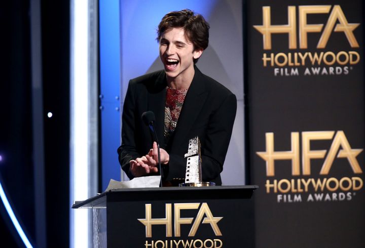 『君の名前~』で見事アカデミー主演男優賞にノミネートされたティモシー。ビバリーヒルズで行われるノミニーのランチョンに登場。