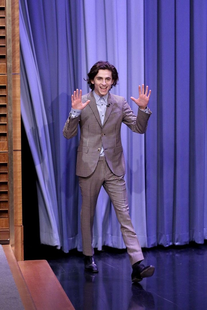 『マーティ~』のマーケティングにも力を入れているティモシーは、自ら製作したオリジナルグッズに身を包み、リムレス眼鏡を合わせてイギリスの人気トークショーに出演。大物俳優たちと軽快なトークを交わすなかで、6月からこのバズカットをキープしていることを明かした。