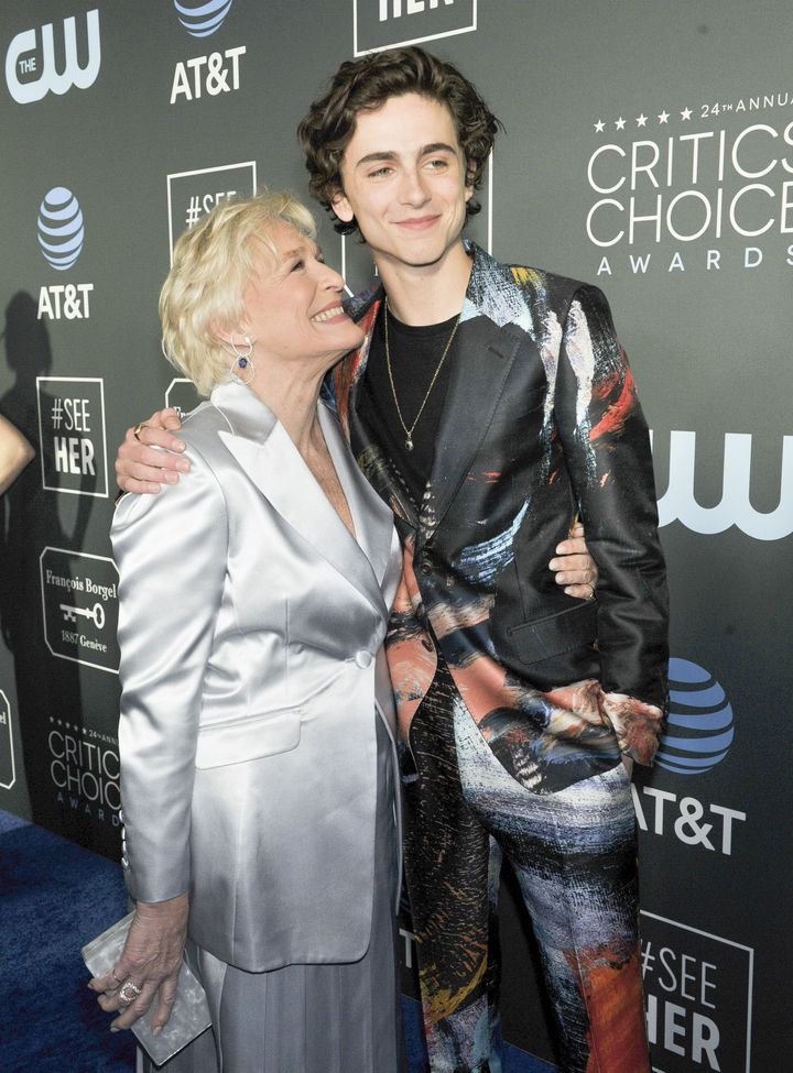 放送映画批評家協会賞にて。「マックイーン」のグラフィカルなスーツをサラリと着こなした様子に、大ベテラン俳優グレン・クローズもとりこに。