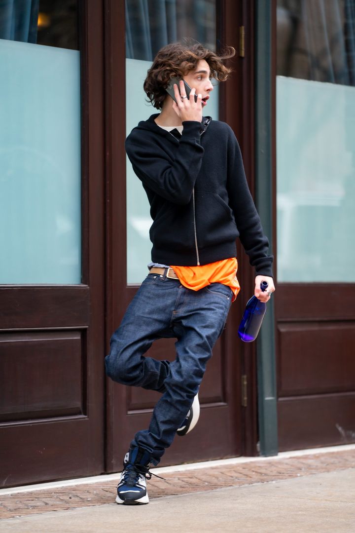 「プラダ」のトップ&パンツと「ジェントル モンスター」のサングラスでNYプレミアに降臨し、プロのモデルのようにポーズ。男性ハリウッドスターでいちばんメソッド・ドレッシングが上手なのは、やはりティモシーで間違いない。