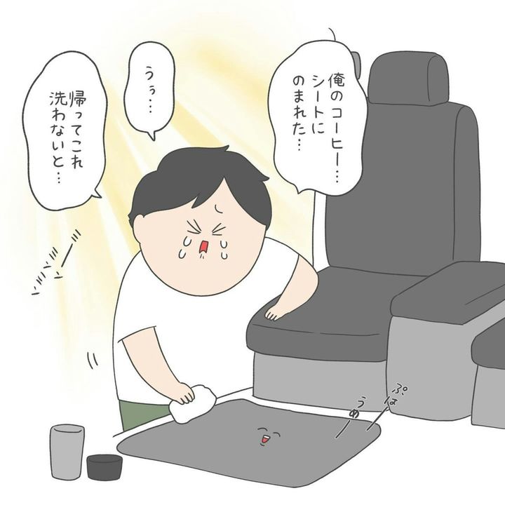 子どもの何気ないひとことに気持ちが軽くなったことはありませんか。チリ ツモル(@pasumondo)さんの夫は、この日、何をやってもうまくいかず落ち込んでいました。気持ちが沈む中で、追い打ちをかけるように車の中でドリンクをぶちまけてしまいガックリ。そんなパパを見た息子が、ある言葉をかけてくれて…。