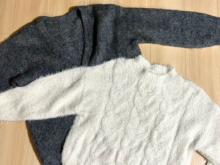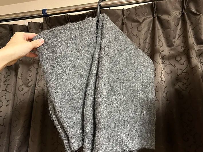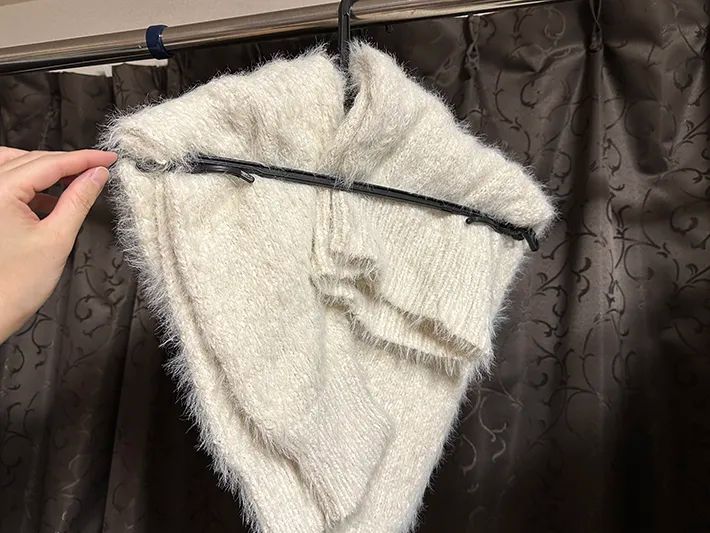 ただし、ロング丈は揺らしても落ちにくいですが、通常丈のニットは揺らすと落ちてしまいました。