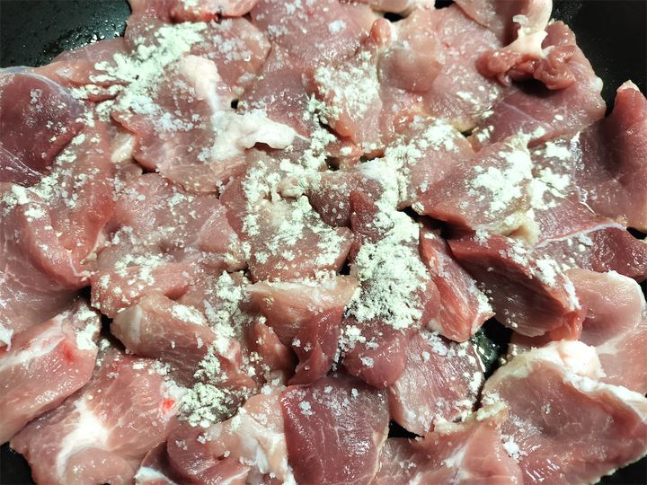 豚もも肉はそぎ切りにしておきます。