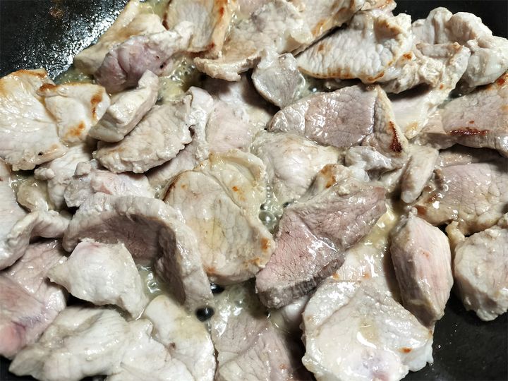 7. 3の肉を戻して強火にします。