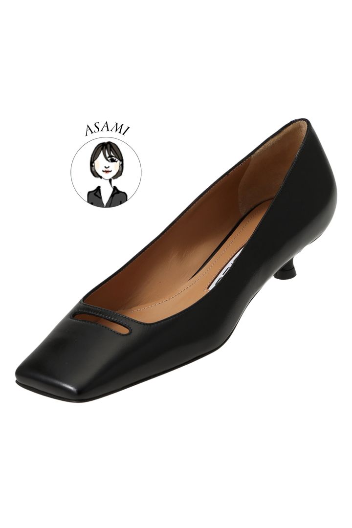 「一年を通してシーンを問わずに使える黒のパンプスは、セールで買っておいて損はないアイテム。歩きやすいフラットもいいけれど、ビジネスからお出掛けまでどんな場面でもサマになるのは、程よい高さのヒールパンプスです。『ペリーコ』のパンプスは、ミニマルなデザインと3.5cmのキトゥンヒールが特徴。足元からほんのりレディなムードを漂わせて」(バイヤーASAMI)
