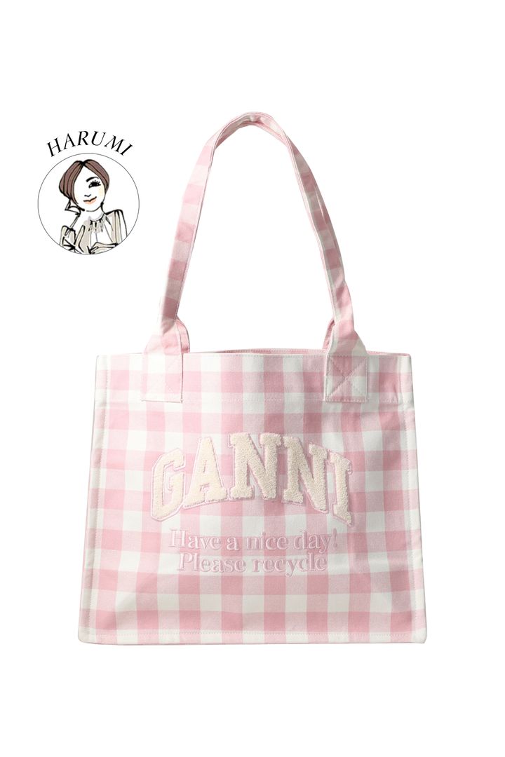 「マチがしっかりある大きめサイズのトートバッグは、通勤・通学からショッピング、小旅行まで対応できる優れもの。今回のウィンターセールでの私的イチ押しアイテムは、『ガニー』のアイコンでもあるショッパーバッグです。使いやすいサイズ感とかわいらしい薄ピンクのギンガムチェックがコーデのアクセントになります。アクセサリー感覚で楽しんでください」(バイヤーHARUMI)