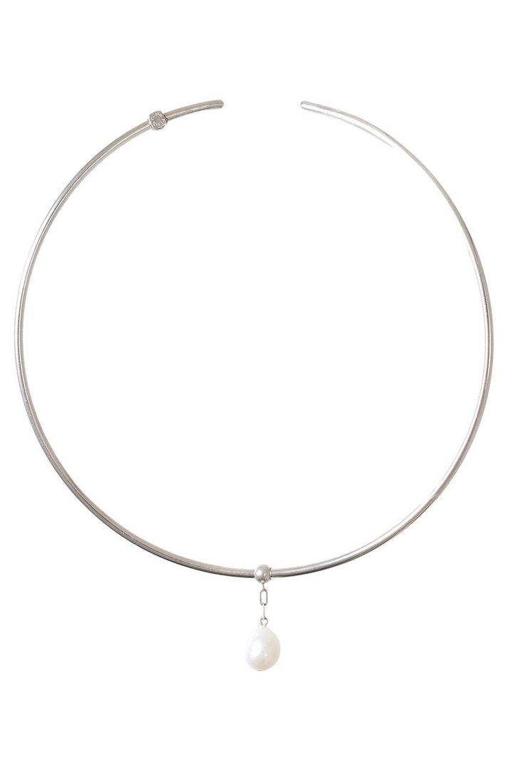 デコルテに浮き上がるパールが上品。きゃしゃなデザインでスキンネックレスのようにデイリー使いしやすい。