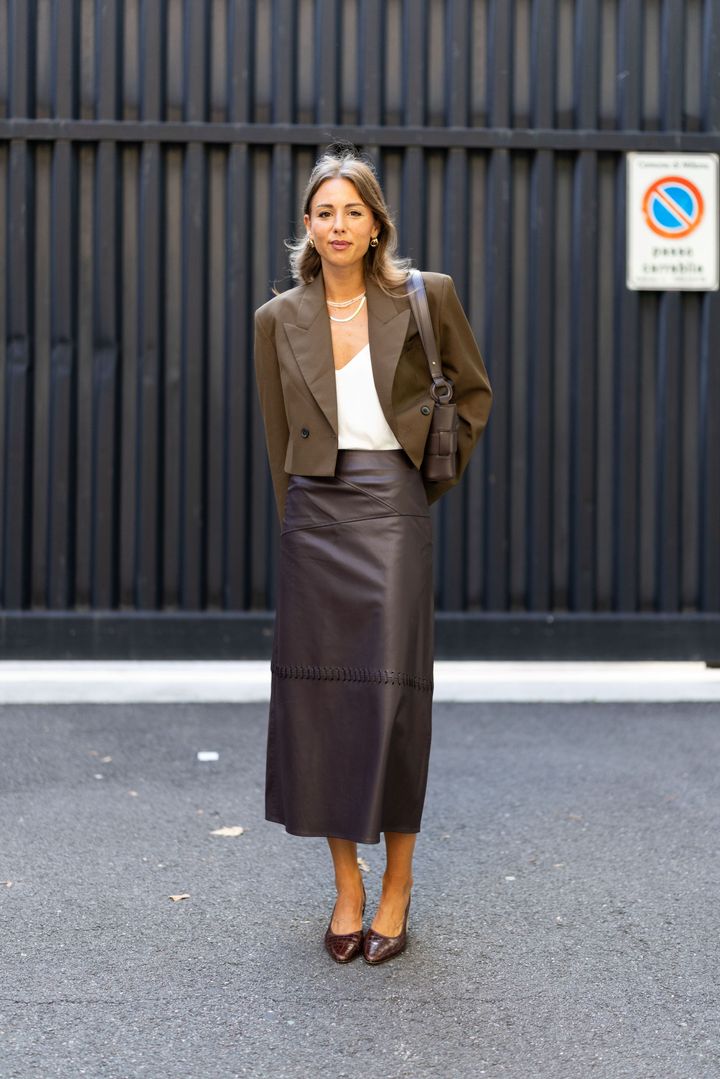 小粒パールの3連ネックレスが、スタイリングに気品をプラス。さらにレザーアイテムでコーデを引き締めれば、都会的なエレガントスタイルが完成。