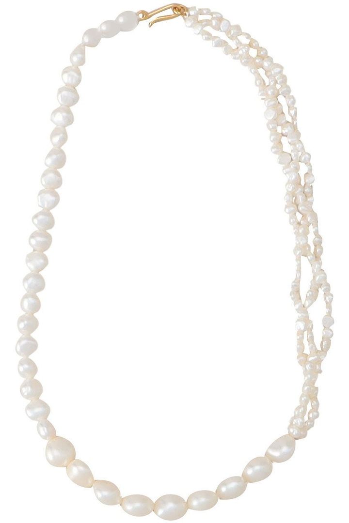 一つひとつ形の違うバロックパールのグラデーションデザインが特徴的。フォーマルすぎずラフすぎない好バランス。