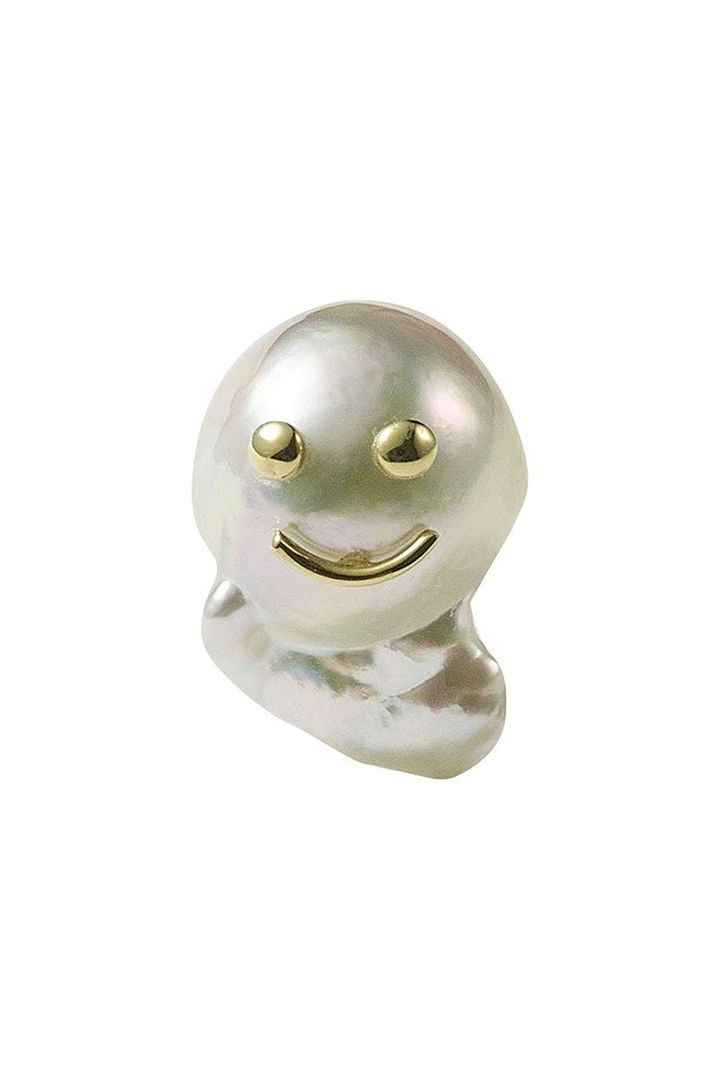 遊び心あふれるオバケモチーフのシングルピアス。コンサバティブな印象を小粋に裏切る、抜け感のあるパール使いにトライしたい。