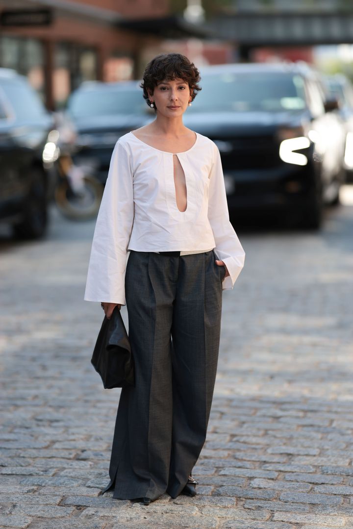 存在感抜群の大ぶりのバロックパールが魅力的。ミニマルコーデに取り入れて、洗練された大人の気品をアピール。