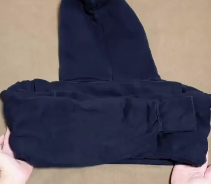 フードがかさばりがちなパーカーは、まず裾を2回折ります。