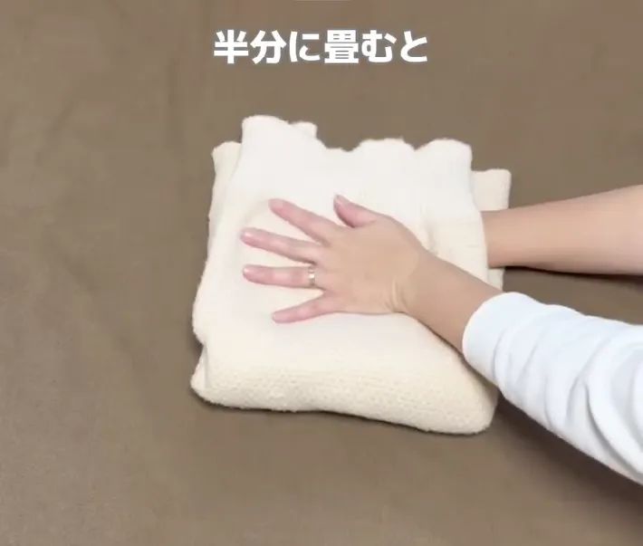 次に、左右の端を重ならない程度に折りましょう。ニットの肩のラインで折り返すそうですよ。
