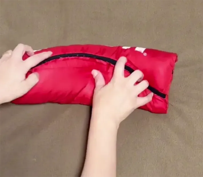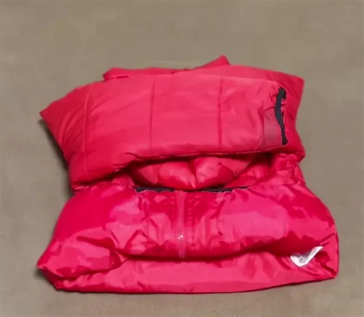 普段の外出時でも、使えそうなアイディアです。ダウンジャケットは持ち運びにくいイメージがありましたが、これなら幅をとりませんね。