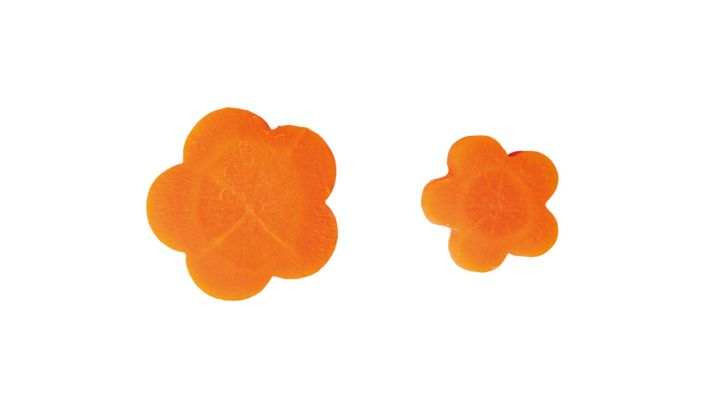 幅1cm以下の輪切りにし、抜き型で梅形に抜く。小鍋に入れて、かぶるくらいの水を注ぎ、柔らかくなるまでゆでる。