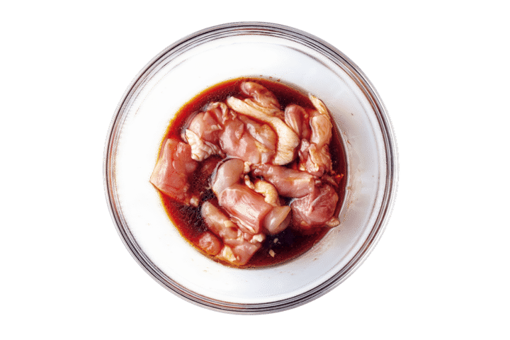 ボールに〈下味〉の材料を入れて混ぜ、鶏肉を加えてもみ込み、10分おく。