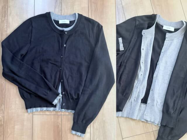 ▲レイヤード配色ニットカーディガン ¥5,940 / hellam
