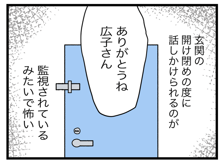 主人公は、義母と内扉で繋がる二世帯住宅で暮らし始めました。近すぎず遠すぎない距離感で、うまくやっていけると思っていたのですが…。義母は、ちょっとした用事(牛乳を頼むなど)で、内扉の前で主人公が出てくるのを「ず〜っと待っている」という、信じられない行動に出始めます。この状況は、主人公のプライベート空間が、義母によって完全に侵食されていることを示していました。