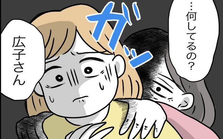 主人公が自分の家に鍵をかけると、義母は内扉の向こうでガチャガチャと鍵をいじる…。さらに、「牛乳を頼む」という一見無害な行為も陰湿で分かりにくい嫌がらせ。巧妙かつ執拗に精神的な負担をかけてくる義母の存在は、まるでホラーそのもの。逃げ場のない二世帯住宅で、妻の心は静かに壊されていきます。