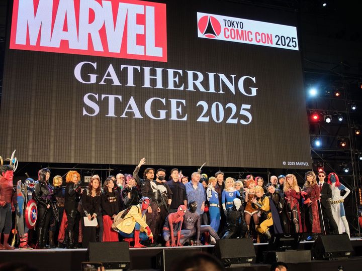 マーベルのコスプレ・ギャザリングというステージ。マーベル映画お馴染みのキャラクターに扮するファンが集う、コミコンの名物ステージだHarumari Inc.