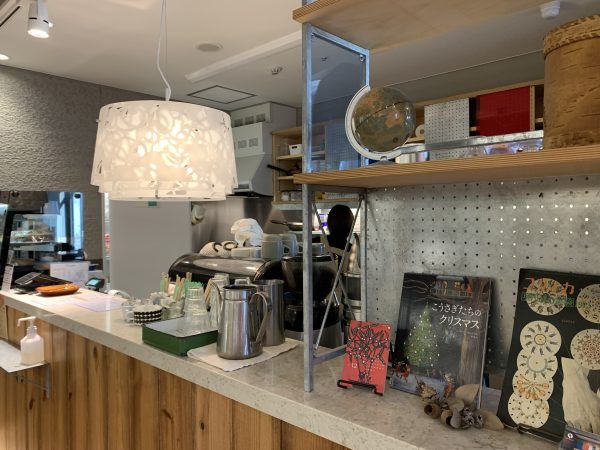 静かな図書館の一角にあるカフェ