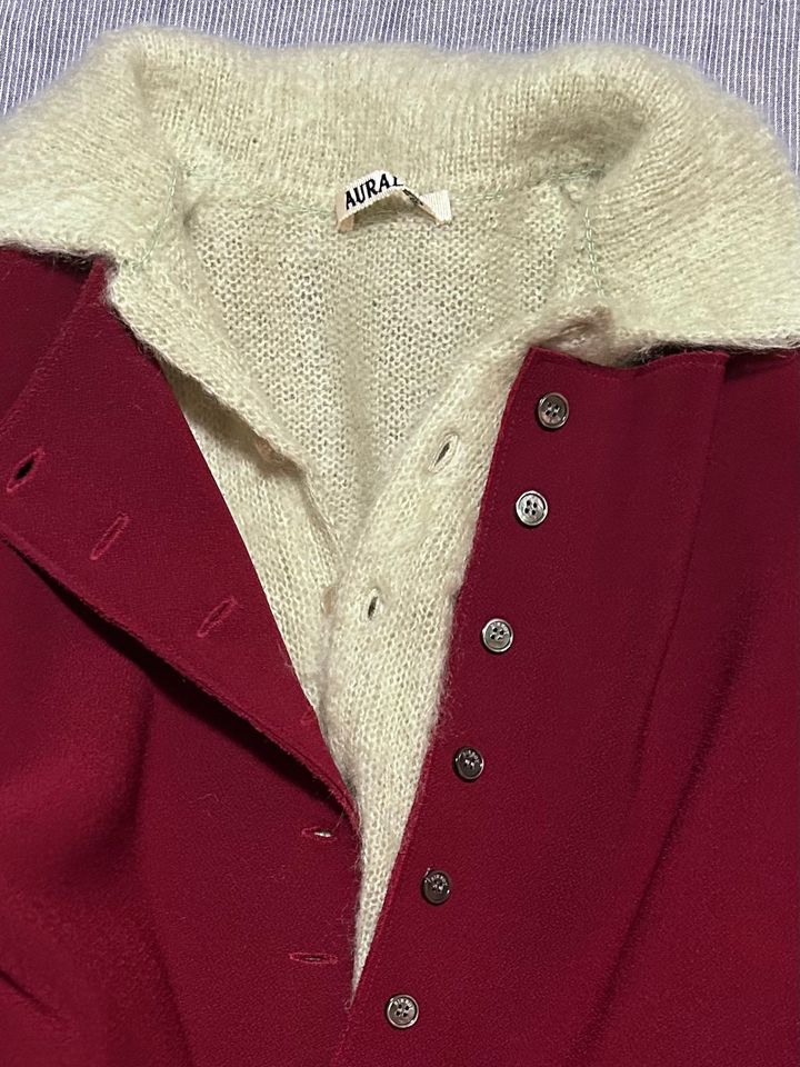 「オーラリー」のモヘアニット。パステルカラーが個人的に難易度が高くお蔵入りしかけるも、おしゃれ番長のエディターCに「重ね着するとかわいい」と教えてもらって出番が急増🙏