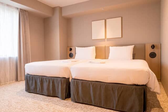 「プレシャスコンフォートツイン」は、ダブルルーム2室をつなげてリノベーションした客室です。7階から11階に各1部屋ずつ用意され、エキストラベッドを追加して3名でも宿泊可能です。