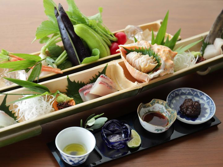 ディナーには、瀬戸内の旬魚や島の野菜に小豆島産オリーブオイルを組み合わせた「オリーブ会席」を。素材の味が引き立つよう料理ごとに異なるオリーブオイルがセレクトされていて、和食とオリーブオイルの新しいマリアージュに出会えます。小豆島の魅力を五感で感じながら、心寛ぐ時間を過ごしてみては。
