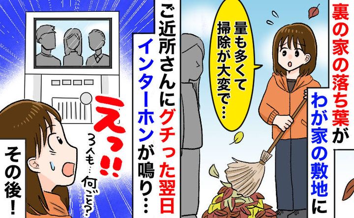 「裏の家の落ち葉がわが家に…」ご近所さんに愚痴った翌日、玄関モニターに“3人の影”が…出てみると!?