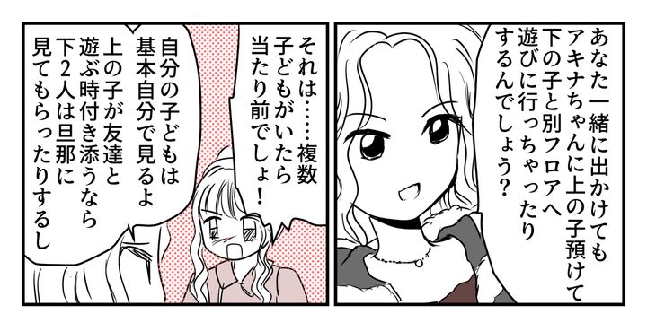 アキナさんとはどうも話が噛み合いません。べつに私は、スズカの遊びに付き添えないと言っているわけではないのです。ただ、マコトを連れてくるなとアキナさんが言うから「じゃあ、スズカをお願いね」と言っているだけなのに!