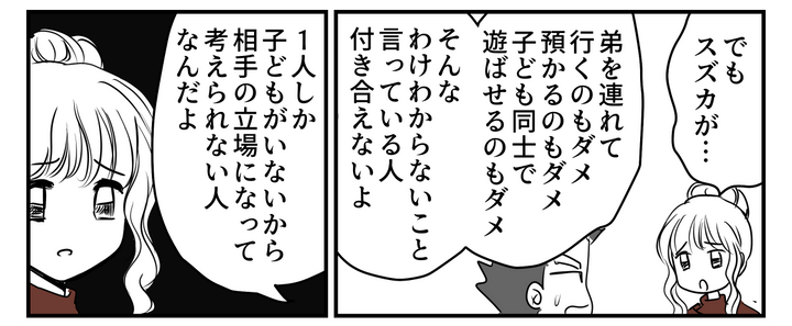 それなのに「下の子は連れてこないで」「子どもを預かることはできない」と言われてしまったら、スズカが遊びたいときに遊べませんよね?