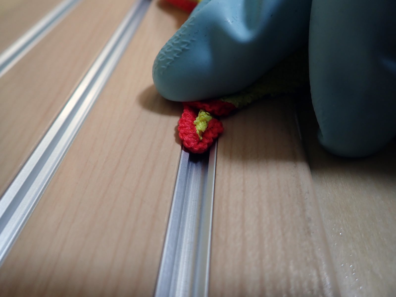 仕上げはレールの上をさっと水拭きし、乾いたクロスで水分を拭き取れば終わり。ここまでの作業にかかった時間は、たったの3分弱です。