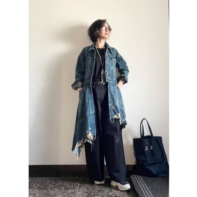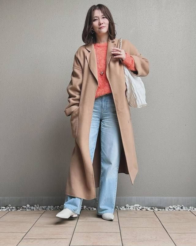 【50代】ロングコート×デニムパンツのコーデ