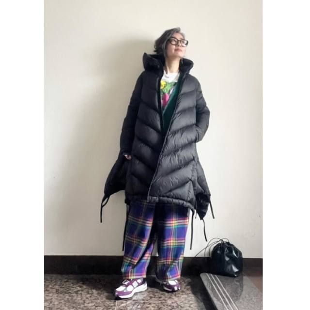 【50代】ロングコート×柄パンツのコーデ