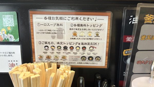 無料のトッピングや味変トッピングなどもあり、油そばのおいしさは無限に広がっていきそうです。