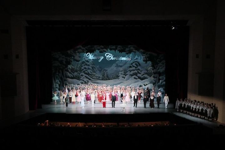 クリスマスソングを歌い始めると、HBC少年少女合唱団のコーラスや、『くるみ割り人形』のキャストたちも集まり、会場は一気にクリスマスムード一色に。