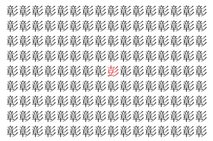 画像の中には、「彰」という漢字が縦に9行、横に16個並んでいます。 全部で144個となりますが・・・、そのうち1つは「異なる漢字」となってますよ!!