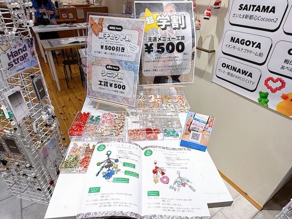 パーツ購入は1つ11円から手に取れるため、「今日は材料だけ」「自宅でゆっくり作りたい」という人にも利用しやすいお店です。