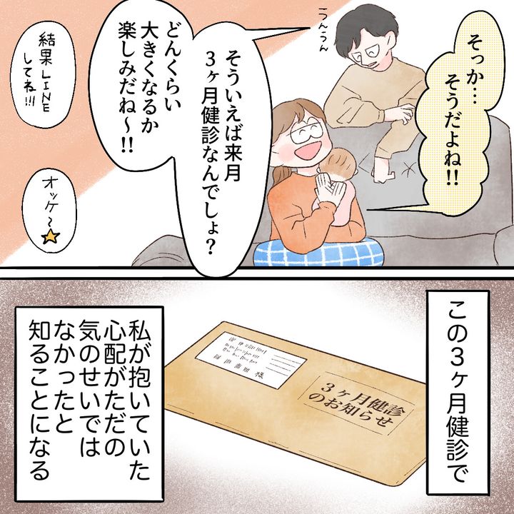 「そうかもしれない」と前向きに考えようとするまろでしたが、3ヶ月健診で、まろの心配がただの気のせいではなかったことがわかるのです。
