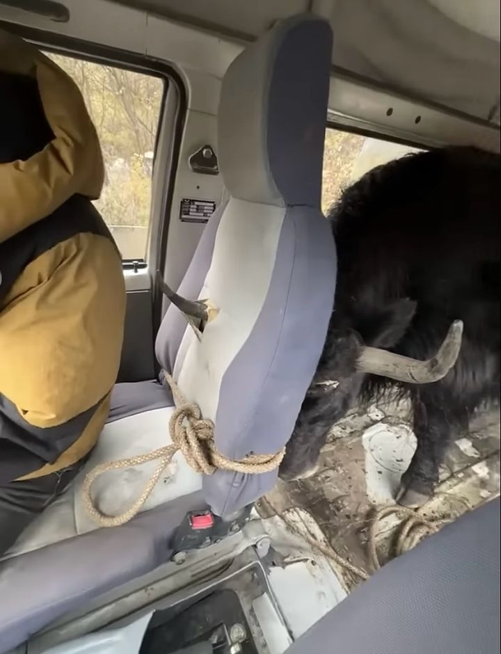 中国・四川省で起きたあるハプニング。 そこには、車の後部座席に乗って移動する牡牛の姿がありました。