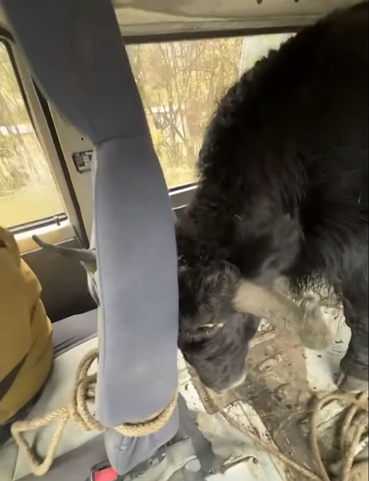 車の後部座席にいた牡牛。 なにかの拍子でまさかのハプニングが起きていたのです!